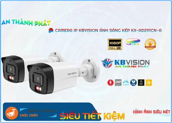 Một trong những tính năng nổi bật của KBvision KX-AD2111CN-A là chế độ chiếu sáng kép thông minh, với đèn LED ánh sáng trắng và hồng ngoại. LED trắng có phạm vi chiếu sáng lên đến 15m, trong khi đèn hồng ngoại hỗ trợ tầm nhìn ban đêm lên đến 30m. Điều này giúp camera hoạt động hiệu quả suốt 24/7, đảm bảo hình ảnh luôn rõ nét dù trong điều kiện ánh sáng yếu hoặc khi không có ánh sáng.