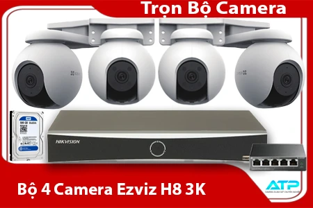 – Số lượng camera: 4 camera EZVIZ H8 độ phân giải 3K (2304 x 1296), hỗ trợ quay quét 360°, tầm nhìn ban đêm hồng ngoại 30m, tích hợp công nghệ xử lý hình ảnh 3D DNR, ICR, DWDR, phát hiện người và đàm thoại hai chiều.
